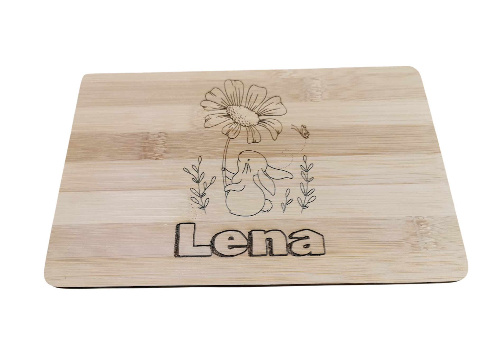 Frühstücksbrettchen „Motiv Hase“ 25cm x 16cm Bambus