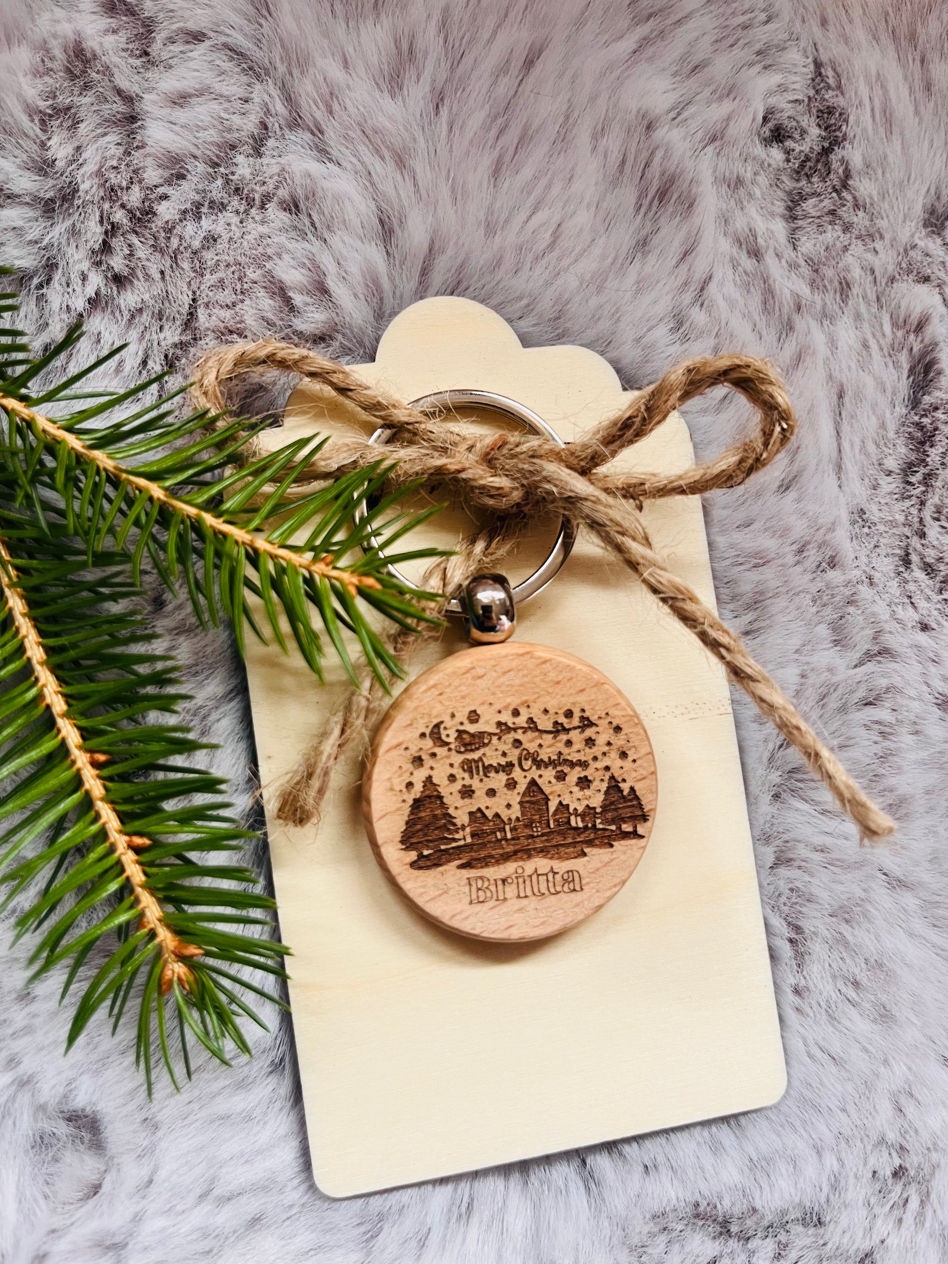 Personalisierter Weihnachts-Schlüsselanhänger aus Holz inklusive Geschenkverpackung